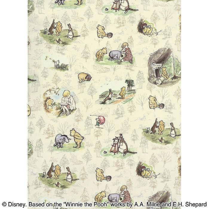 プーとクリストファーロビンが100エーカーの森のなかまたちと過ごすのんびりとした日常が描かれています。オックス生地はほどよい厚みがあり、小物づくりやエプロンにおすすめです。