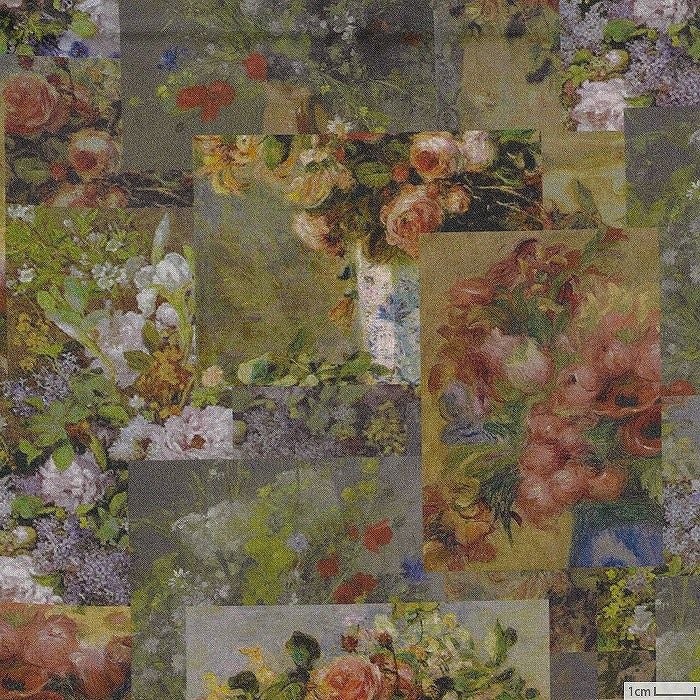ルノワールが花を描いた作品を組み合わせた総柄です。コットンローンでスカートやワンピースなどの生地がたっぷりとしたアイテムにおすすめです。