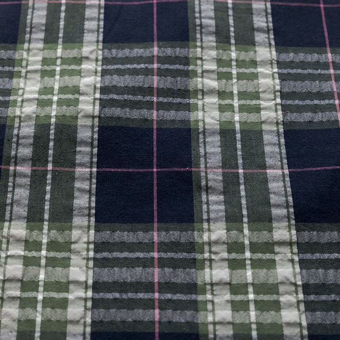 4. 新潟見附産 麻混サッカーマドラスチェック<02N>生地 ホビーラホビーレデザインコレクション