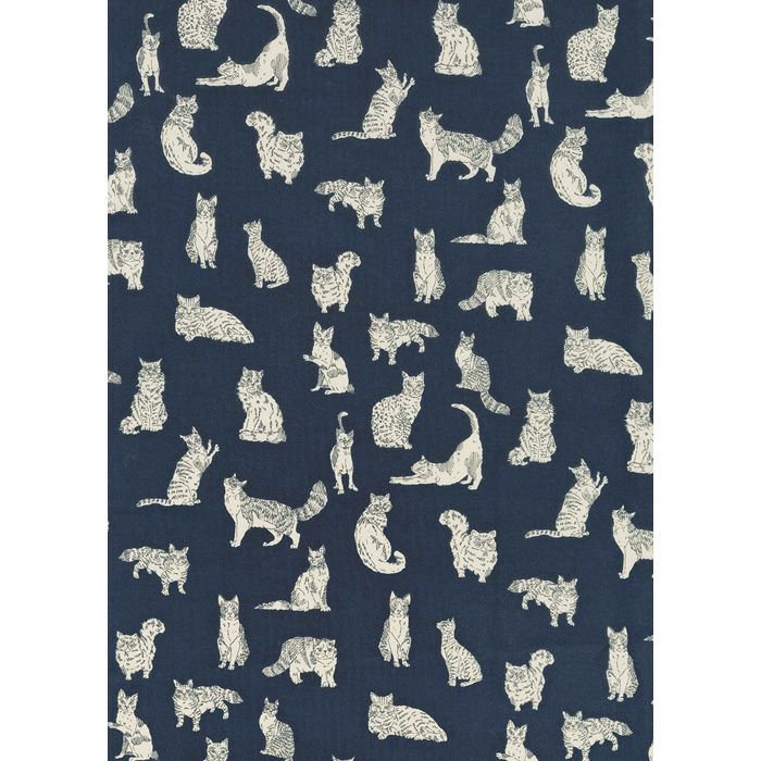 ラグドール、ブリティッシュショートヘア、メインクーン、アビシニアン、ベンガル、ビルマなど、さまざまな種類の個性豊かな猫たちが、徘徊したり、ポーズを取ったり、伸びをしたり、くつろいだりと、魅力あふれるカンバセーショナルデザインです。デザインスタジオで描かれたスケッチ風のインクペンのイラストは、大胆な地色に配置され、それぞれのネコを縁取るように丁寧に描かれています