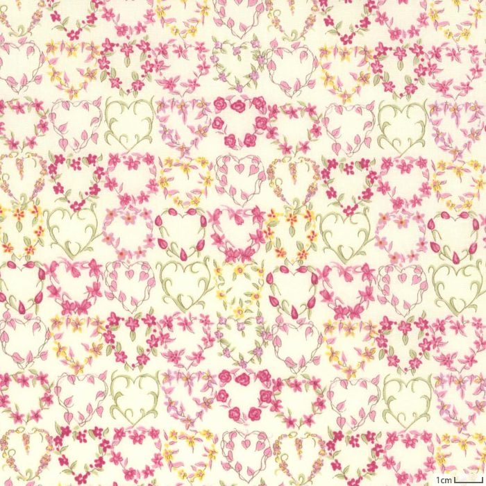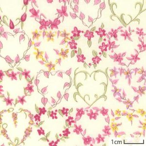 人気の小花柄、いちご柄、ハート柄をオリジナルカラーで展開。ピンク系プリントのバリエーションでウェアや小物づくりをお楽しみください。