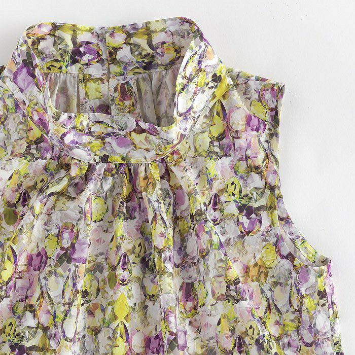 明るく柔らかなカラーリングのプリントは、夏の上品なおでかけ着におすすめです。