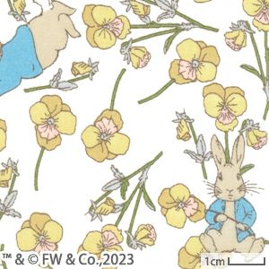 2005年にクラシック・コレクションに加入しているデザインに、私たちも大好きなピーターラビット(TM)のキャラクターが加わりチャーミングに生まれ変わりました!2001年にリバティのスタジオで手描きされた「ロス」には、摘みたてのパンジーの束が転がるように繊細に描かれています。