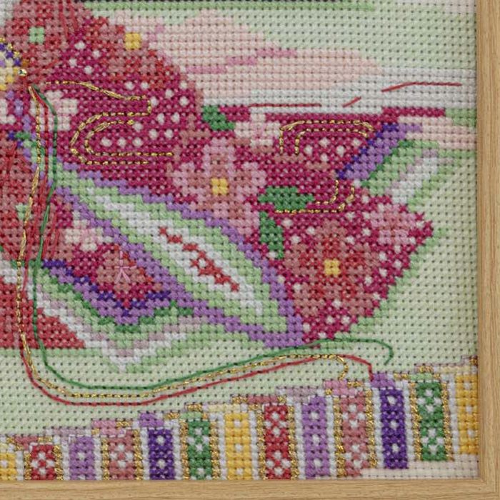 セット内容無地布(綿100%)/刺しゅう糸16種(綿100%)/ラメ糸〈ピンク〉(ナイロンン33%、ポリエステル67%)/ラメ糸〈金〉(キュプラ63%、ポリエステル37%)/ラメ糸〈銀〉(キュプラ65%、ポリエステル35%)/スパンコール/ビーズ2種/額/木のバー/ボール紙/針2種と糸通し/説明書2種