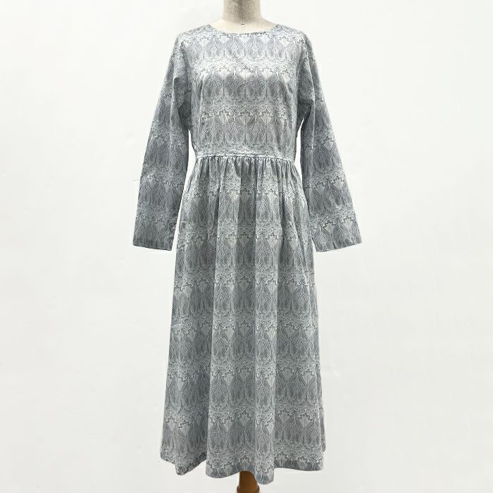 リバティプリント シンプルギャザーワンピース(長袖)<Mサイズ>31E
