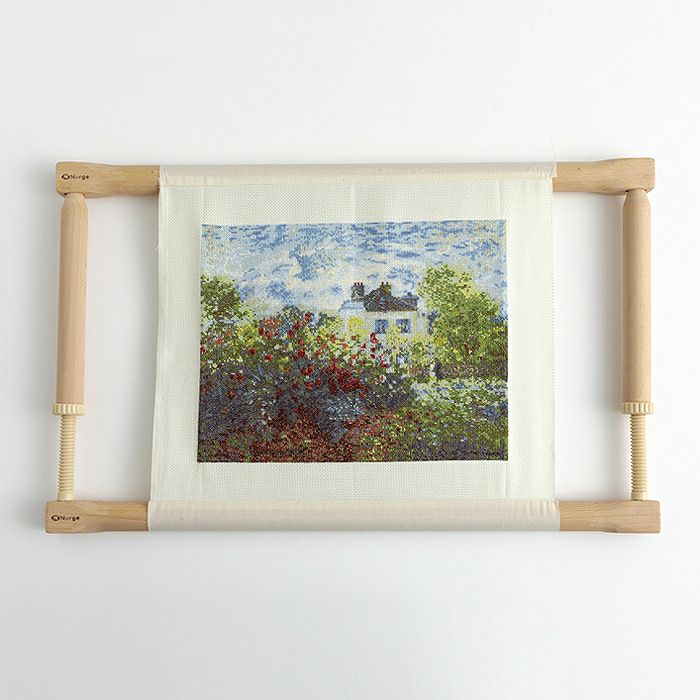 作品に合わせてフレームの長さを調節できるニードルワークフレーム、刺しゅうした後も完成した作品やお気に入りの