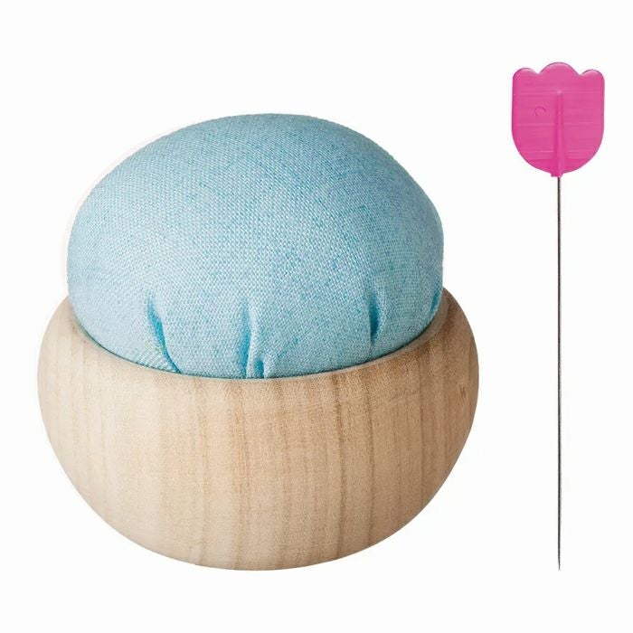 「針やま」の台座には、いくつもの木材の中から、やさしい印象の桜を選びました。天然素材ならではの風合いや表情を大切に、手にした時の心地よさ、そして針仕事をしている時の安定感などを考えたフォルムに仕上げています。