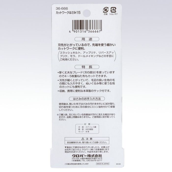 スラッシュキルトやアップリケなど、細かいカットワークに最適です。重ねた布もカットできる丈夫なステンレス鋼の刃です。