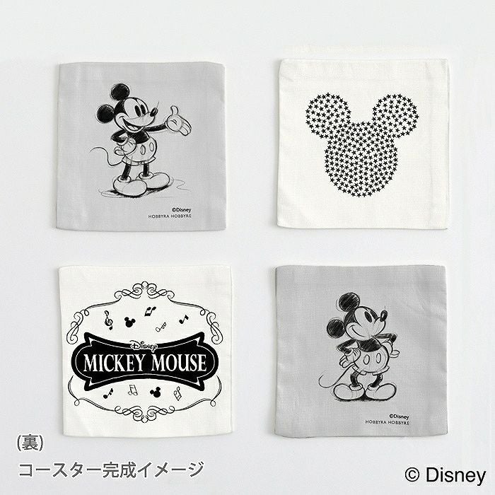 ほどよい厚みのシーチング生地にスケッチタッチのミッキーが描かれたパネル生地です。バッグ2種と、コースター4枚がつくれます。