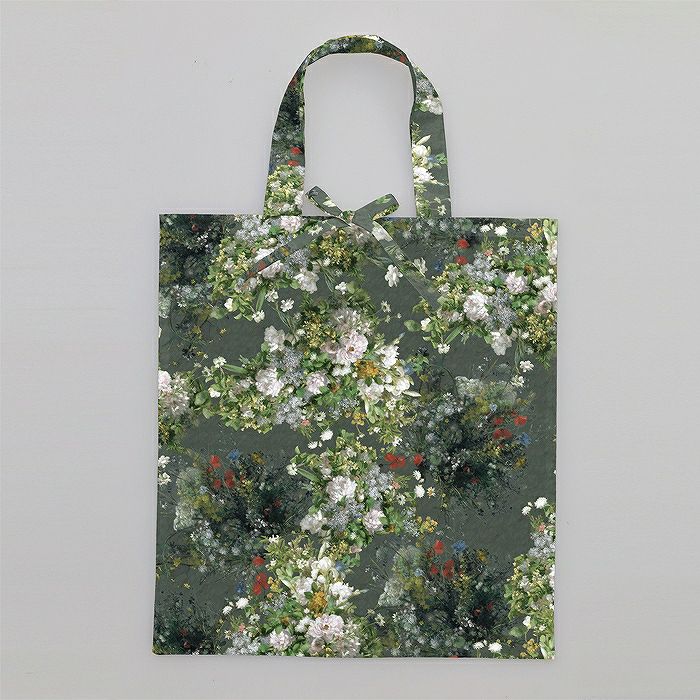 ルノワールの絵画を配置したオリジナルデザインの生地を大きく使用してつくるポケットバッグです。内側のポケットにたたんで収納できるので、美術館のアートショップでのお買い物のときにサッと出せば目を引きそうです。