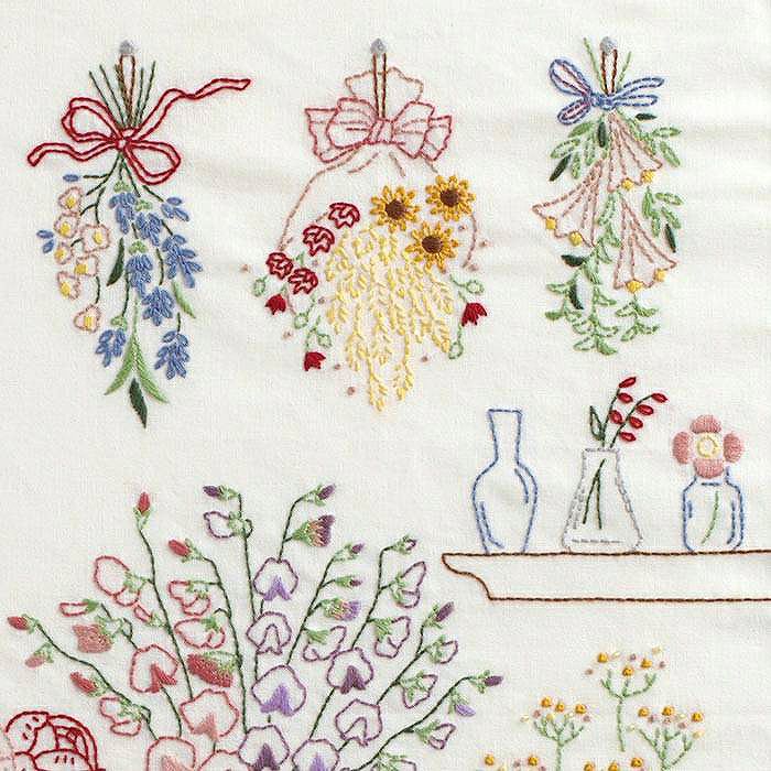 バラやチューリップ、スイトピーなど、色とりどりの春の花であふれる花屋さんの店内ディスプレイがテーマ。様々なステッチを組み合わせ、ひと足早く春の気分を楽しみます。