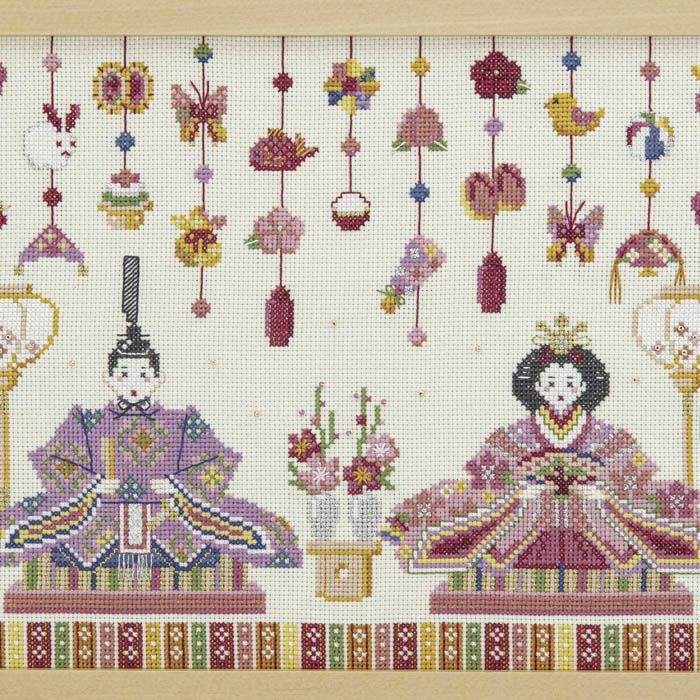 豪華なつるし飾りと愛らしい雛人形をクロスステッチするフレーム。鮮やかな彩りとデザインが華やか。お孫さんやお子さんへの贈り物、ご自宅の季節のしつらえにもおすすめです。