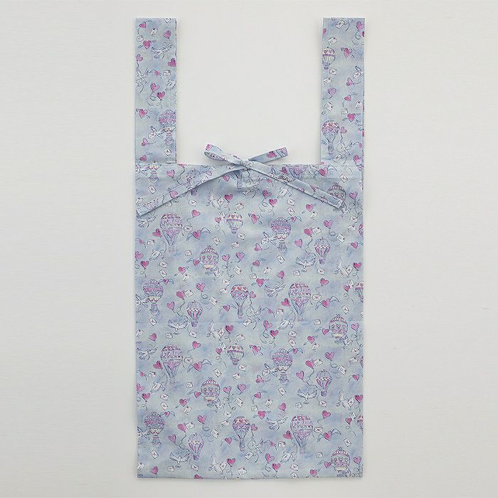 ハート柄の可愛いリバティプリント50cmで完成する一枚仕立てのマイバッグ。持っても肩にかけてもラクな太めの持ち手つき。小さくたためるので、サブバッグとして持ち運べます。