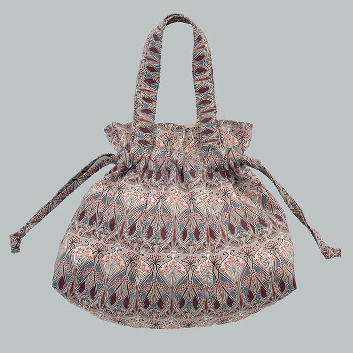 人気柄<アイアンシ>のソフトビエラ地を使った、秋冬向けのおしゃれバッグ。袋口の開き具合を調整できる紐があるので、たっぷり荷物が入る実用性がありながらお出かけにも活躍。