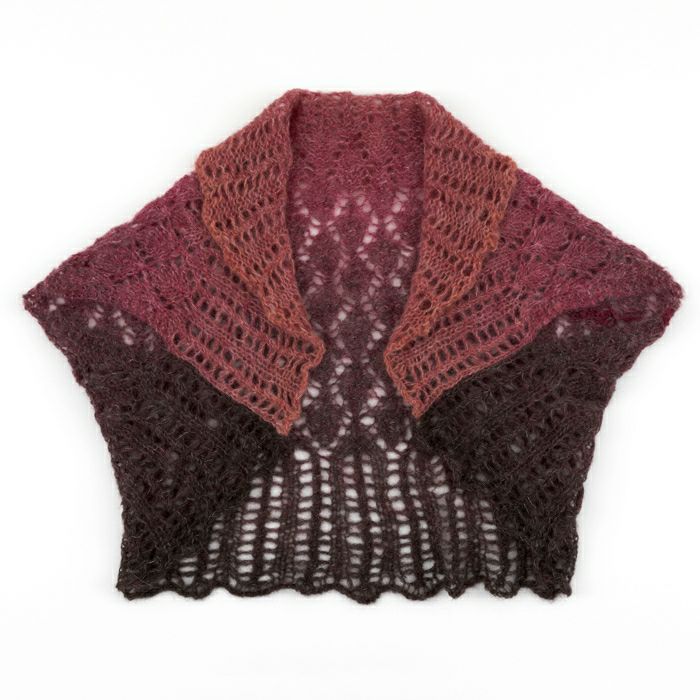 増減なく編んだ透かし編みの編み地を半分に折り、左右の袖下をとじれば完成する軽やかなはおりもの。ロングピッチのグラデーションが美しい手編み糸1玉で編み上がります。