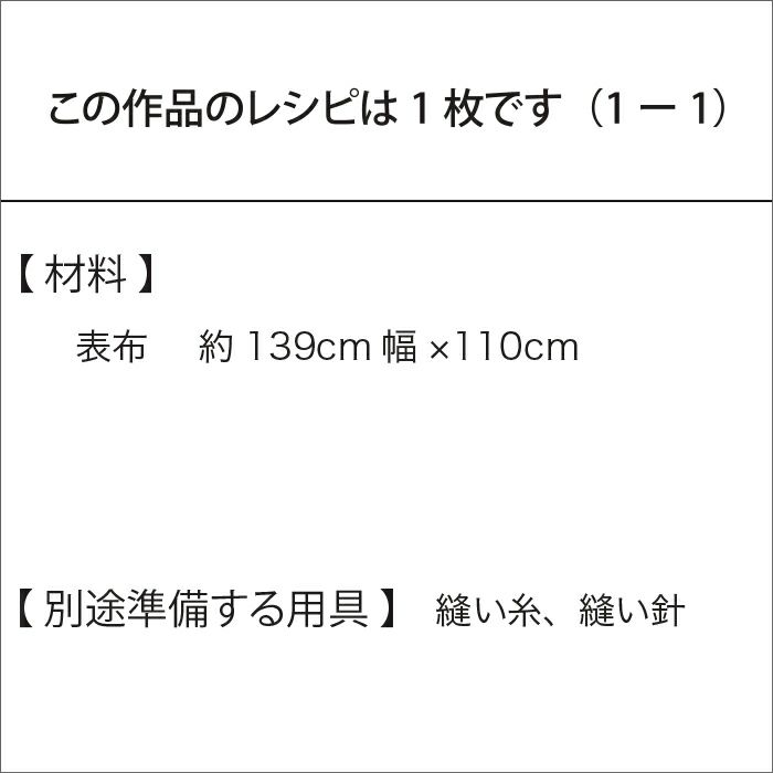 ベッドやソファーのカバーリングなど、マルチに活躍する大きなクロスのレシピ(つくり方シート)です。直線縫いだけで完成します。