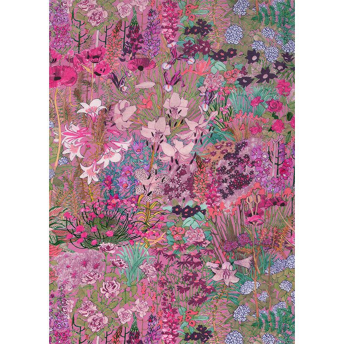 柄サイズは120%拡大です。スカーフの柄からアレンジされた様々な花々が香り立つような美しい柄です。切り取る箇所で違う雰囲気の変化を楽しめます。おちついたピンク地でチュニックやブラウスなどにおすすめです。
