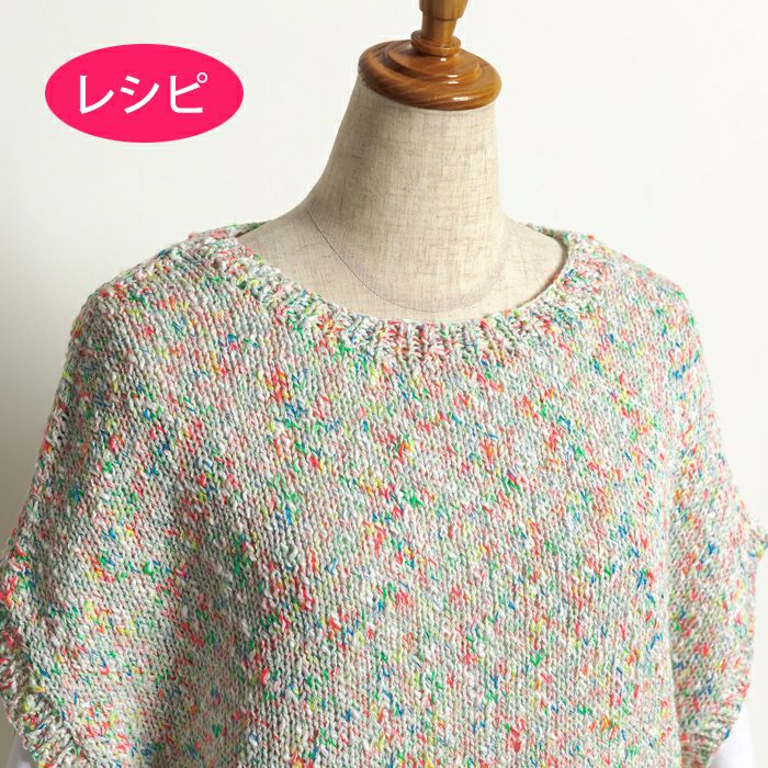 カラフルなスラブヤーン入りの〈コットンプリズム〉で編む、ドロップショルダーのベストのレシピ(作り方シート)です。春は重ね着しやすいベスト、初夏はフレンチスリーブ風ニットとして、長く楽しめるアイテムです。