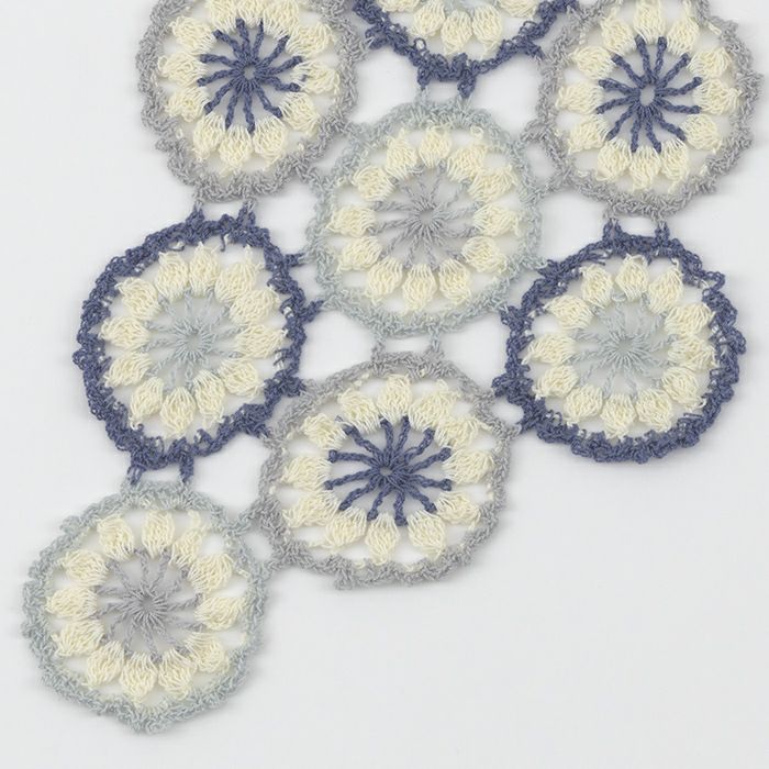 シャリ感のあるコットン糸4色で淡く爽やかな配色の簡単モチーフを編みつなげるストール。着こなしのアクセントから夏冷え対策まで、何通りにも活躍するおしゃれ小物です。