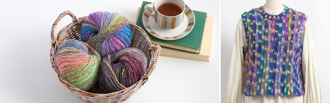 キャンディのように甘くポップな色合いが、編むたびに心を弾ませます。ウールのぬくもりにアクリルの軽やかさをプラスし、やわらかな風合いに仕上げました。