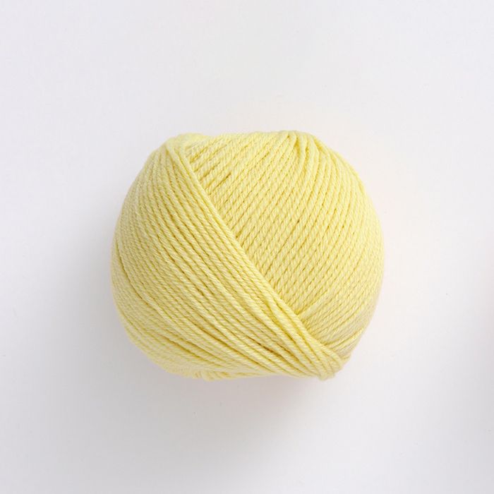 最高級のメリノウールを使用し、手編み糸には稀な極細の単糸を多本数撚りあわせて作られた弾力に優れた糸です。カギ針編み、棒針編みどちらにも使いやすい合太タイプです。