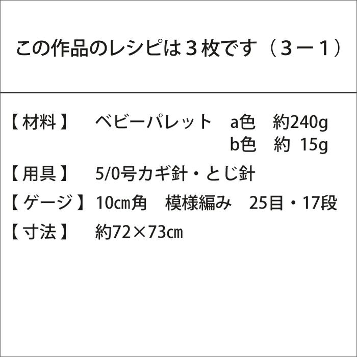 かすり染めの〈ベビーパレット〉でパプコーンを編み込んだブランケットのレシピ(作り方シート)です。レーシーな縁編みとフラワーモチーフのアップリケでラブリーに仕上げます。寒い季節のベビーとのおでかけに。