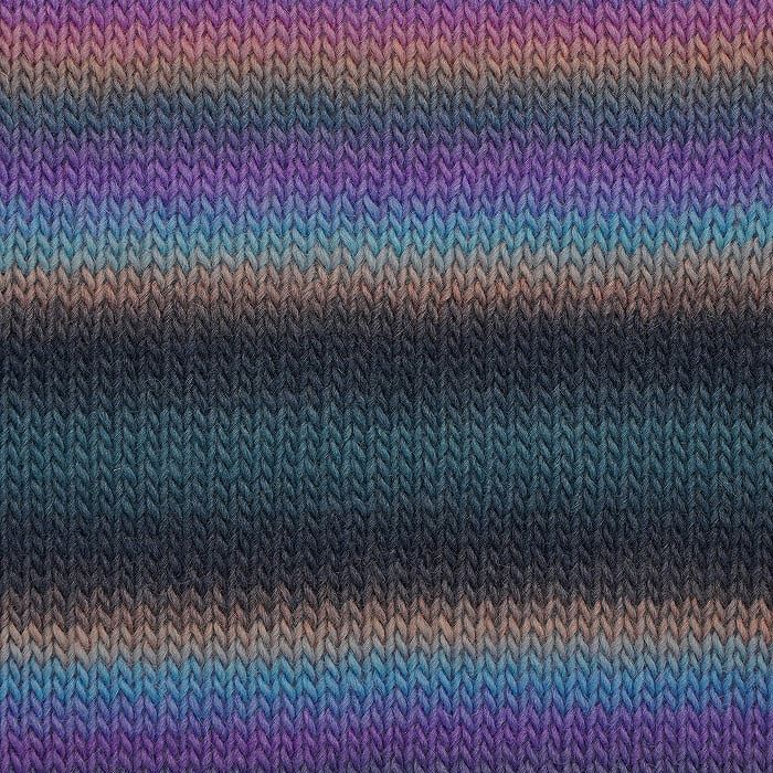 上質で柔らかなウールにモヘヤをブレンドし、糸に撚る前にかすり染めにし、殆ど撚りをかけずに紡績したロービングタイプの糸です。ロングピッチの色の変化で色々な編地が楽しめます。甘撚りのためピリングは起きやすいので、こまめにカットしてください。