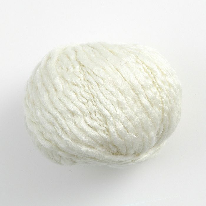 〈バルキースラブ〉はウールとレーヨンをミックスして紡績し光沢のあるスラブ糸に仕上げました。シンプルな編み地でも立体感のある表情がうまれます。