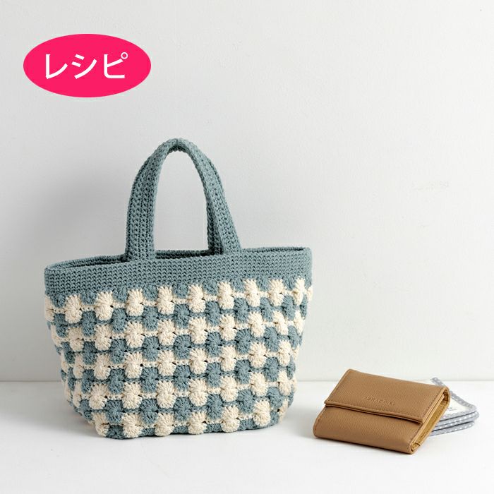 長編みの引き上げ編みで編む、ぽこぽこと立体的な編み地が印象的な使いやすいトートバッグ。編みやすい並太糸〈コットンシェリー〉の、さわやかなバイカラーもポイントです。
