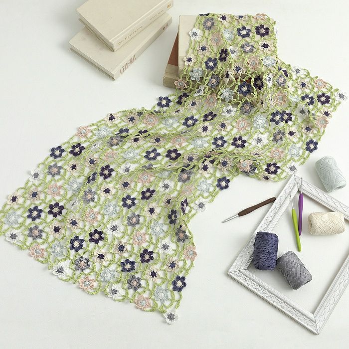 6. 【レシピなし】ボタニカルブランケット<コットンフィールファイン08A>(編み物 材料セット)