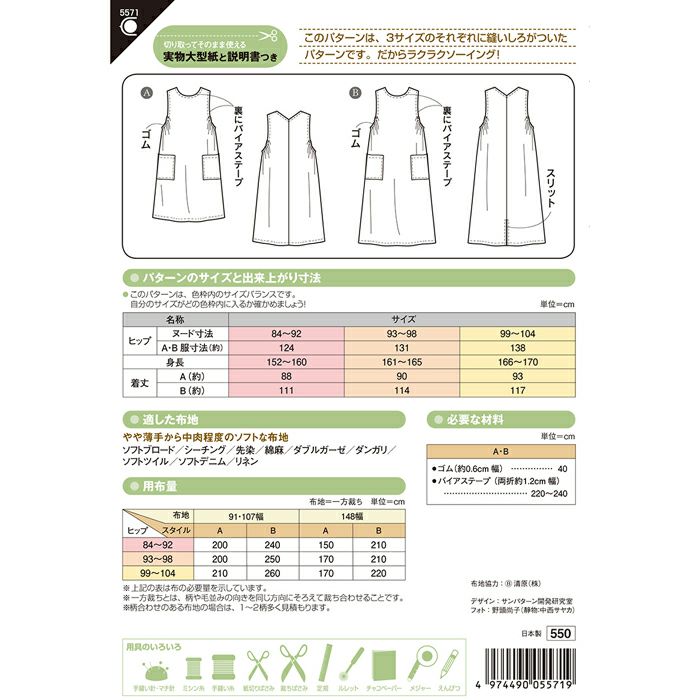 Aはひざ丈、Bはロング丈。3サイズ縫いしろつき。