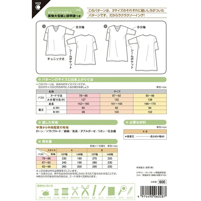 商 品Vネックチュニックワンピース(型紙)