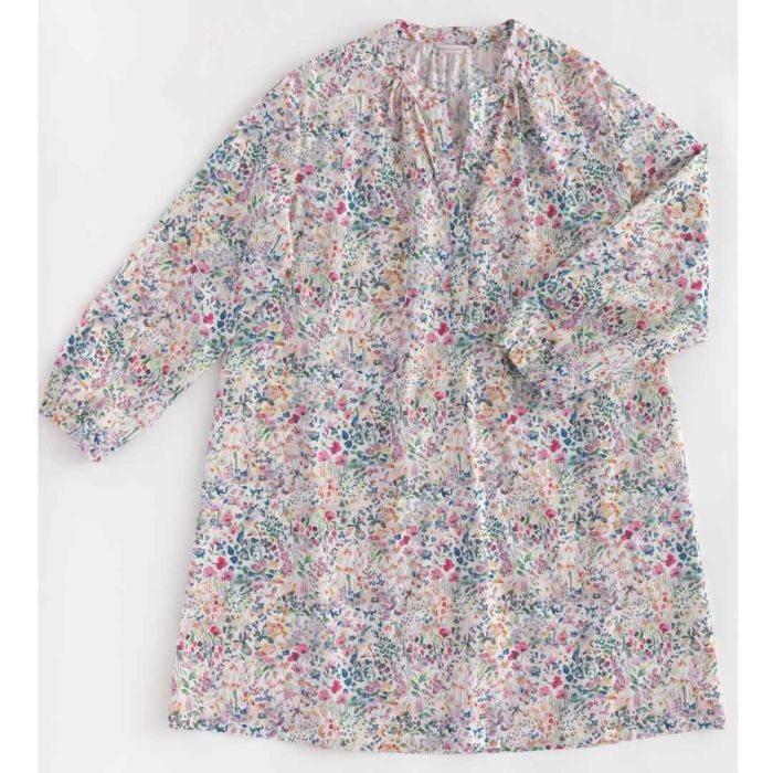 簡単なつくり方の短冊あき、ワンボタン留めでかぶりタイプのチュニックです。