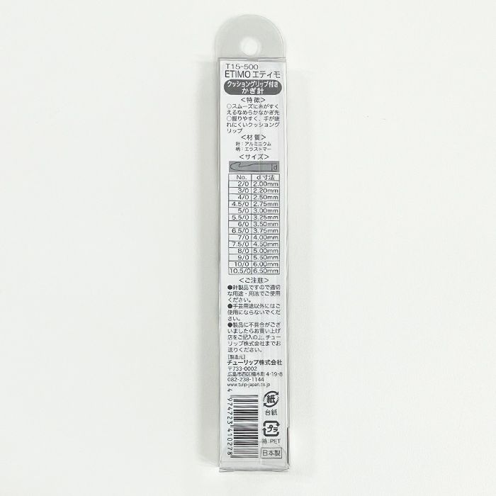 かぎ先に適度なしなりがあり、研磨加工が精巧にほどこされているため、なめらかで大変使いやすいかぎ針です。 持ち手部分には、手にフィットする柔らか素材(エラストマ)を使用しています。