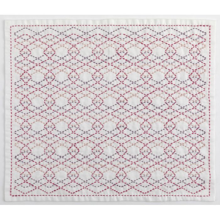 新発売の絹の刺し子糸で数十種の模様を刺すサンプラー、ナチュラルな綿麻地にキルト芯を入れてふっくら仕上げたスプレッドなど、刺し子の新たな試みをご紹介します。