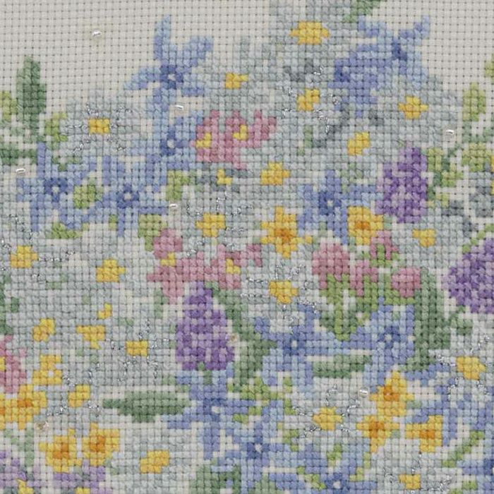 早春を彩る、ムスカリやデイジーなどのブーケをクロスステッチ。優しい色づかいのフレームは、香りや花粉に敏感な方への贈り物にも最適。春の訪れや感謝の気持ちを届けます。