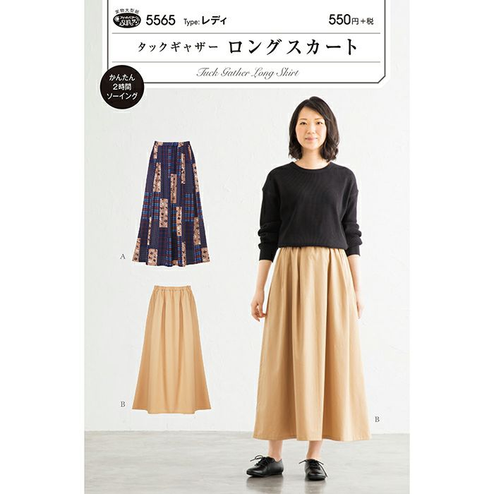 足首が見えるロング丈で、Aはポケットなしの簡単シンプルデザイン、Bは脇縫い目利用のポケット付き。