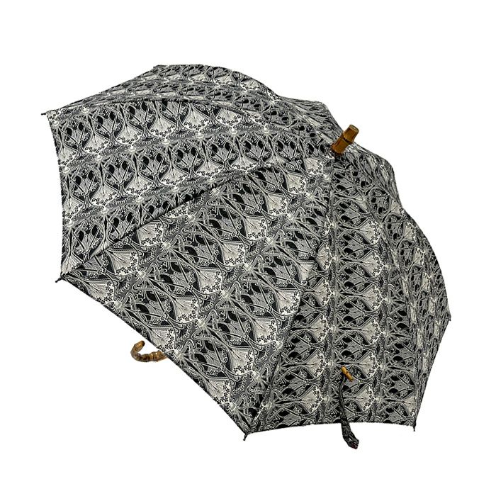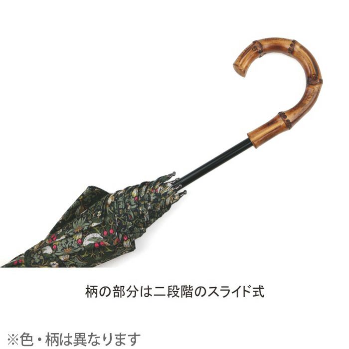 従来の骨組みではなく、開くと桜の花びらのような形をした桜骨になっています。素材も親骨と受骨にグラスファイバーを使用し、通常のパラソルより強度のある仕様になっています。持ち手は高級感のある焼きの入ったバンブーを使用。柄の部分は二段階のスライド式、もちろんUV加工も施してあります。