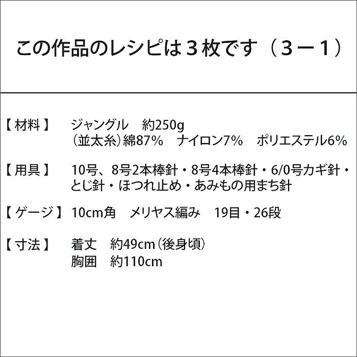 ノースリーブやベストとして3シーズン着回せるメリヤス編みのシンプルなアイテム。袖ぐり付きの身頃を2枚編み、前後をつなぐだけ。ミックス感とメタリック模様が美しい夏糸を使います。
