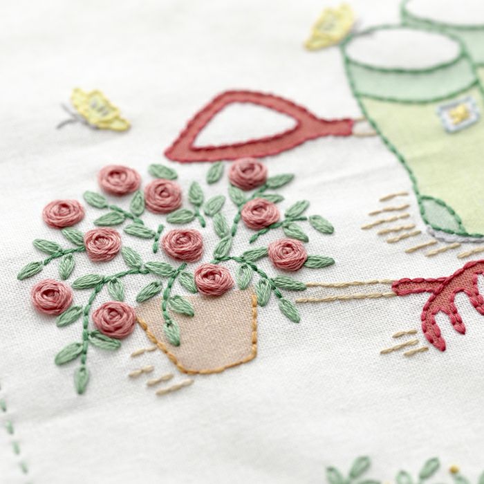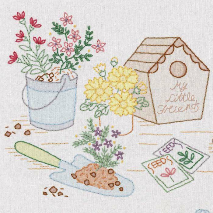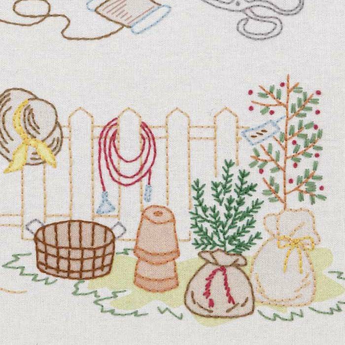 お気に入りの草花が咲く自分だけの庭はガーデナーの憧れ。花に彩られた庭づくりや 植物のある豊かな暮らしをイメージした刺しゅうアイテムが癒しの時間をお届けします。