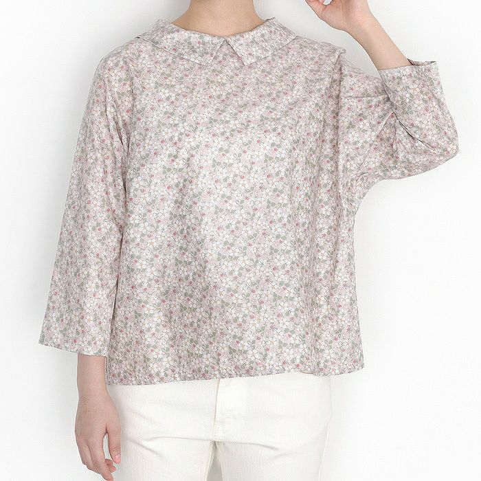 衿つきで、身頃と袖が続いている作るのが簡単なプルオーバー型ブラウス。