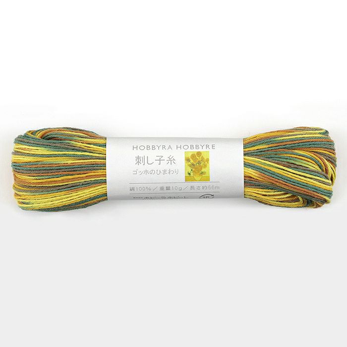 ゴッホが用いる絵の具のカラーリングを反映した段染めの刺し子糸。絵を描くように刺し進めましょう。
