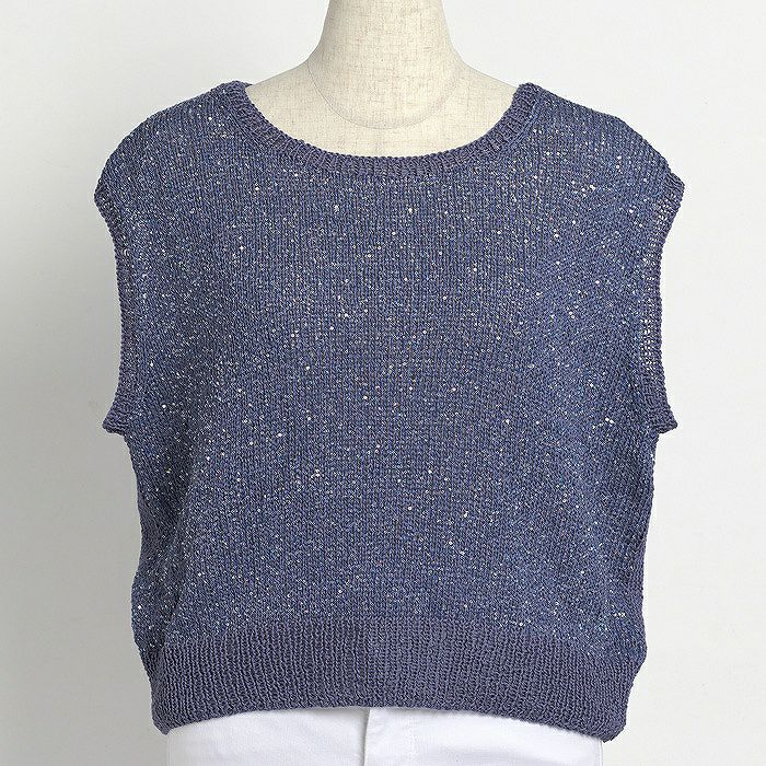 身頃裾に花モチーフを留めつけたフェミニンなレーシーベストや涼やかな素材で編み上げるおしゃれアイテムにも注目♪