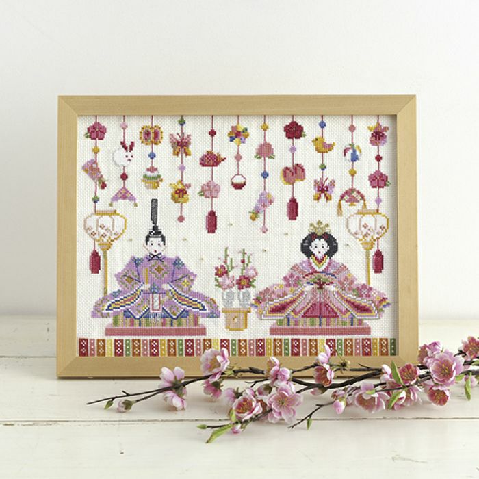 豪華なつるし飾りと愛らしい雛人形をクロスステッチするフレーム。鮮やかな彩りとデザインが華やか。お孫さんやお子さんへの贈り物、ご自宅の季節のしつらえにもおすすめです。