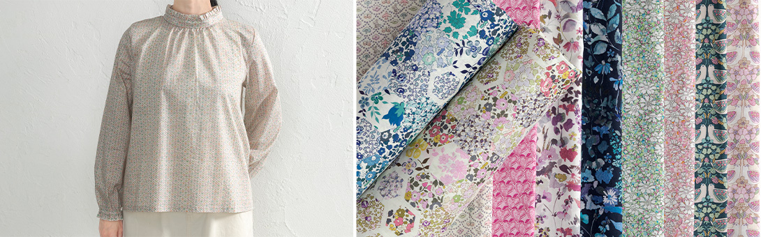 人気のリバティプリントにトレンドカラーを取り入れたホビーラホビーレオリジナルの配色です。 ウェアやバッグなどでぜひお楽しみください。