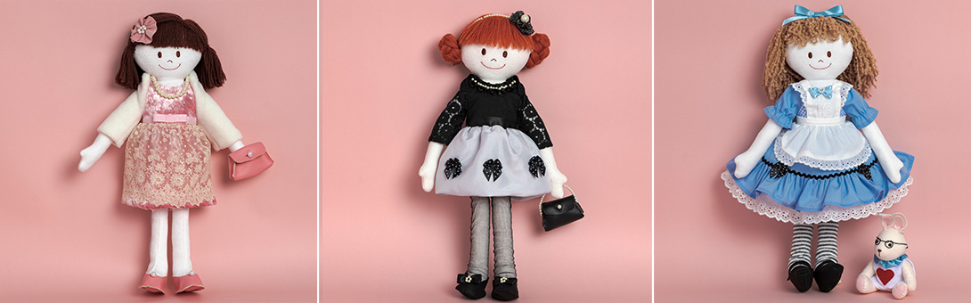 スモッキング刺しゅうで仕上げるドレスセットと、ニーナの着せかえブックの材料セットをご用意。 新しいお洋服でニーナのおしゃれを楽しんで