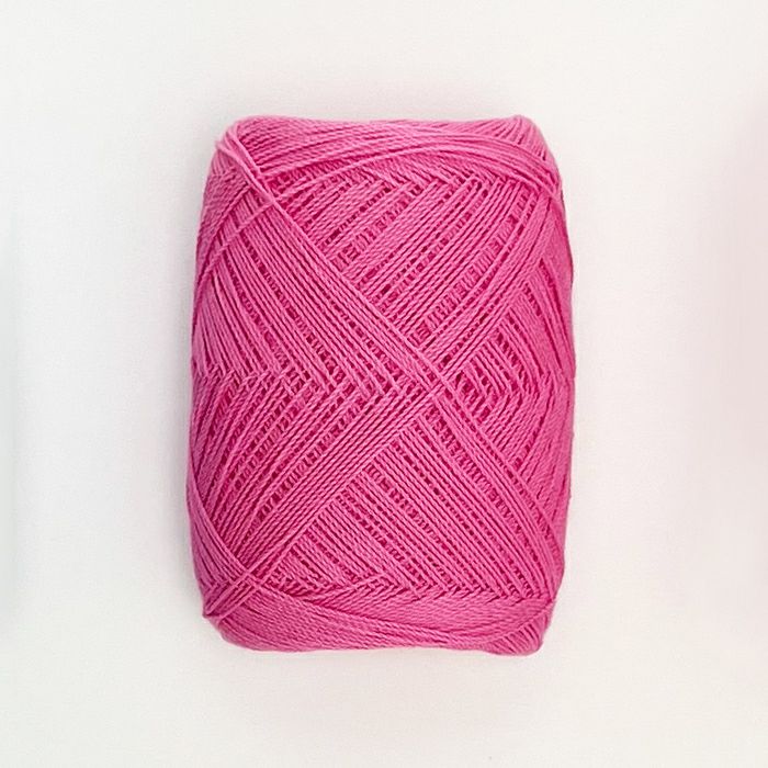 コーマ糸(短繊維や不純物が完全に除去された毛羽立ちの少ない綿糸)を原料とした強撚糸タイプの糸です。洗濯にも強く綿特有の毛羽立ちも押さえられ、編みあがりの清涼感を楽しめます。
