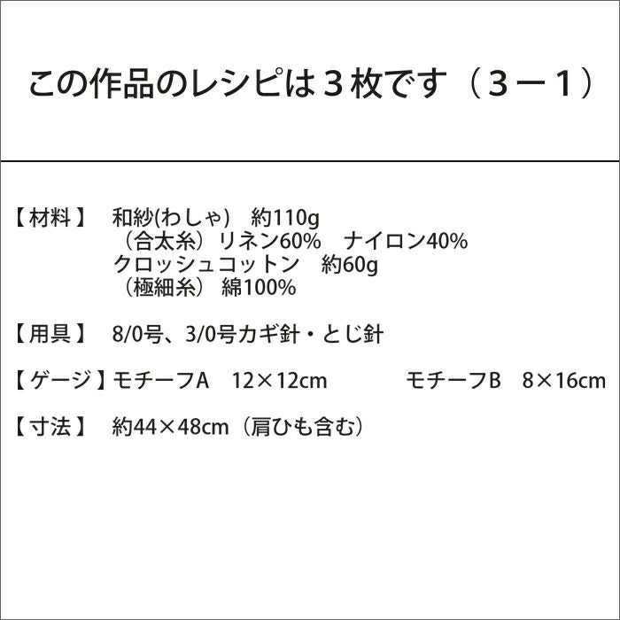 他の画像を見る 入荷しました♪ モチーフキャミソール<和紗02BL+クロッシュコットン51BL>(編み物 材料セット) 難易度: 販売価格 ¥ 8,580 税込 (0) カートに入れる お気に入りに登録する
