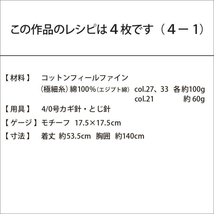 他の画像を見る クロッシェモチーフベスト<コットンフィールファイン>(編み物 材料セット) 難易度: 販売価格 ¥ 9,185 税込 販売期間 2026/02/25 10:00 〜 2026/12/31 17:00 (0) カートに入れる お気に入りに登録する
