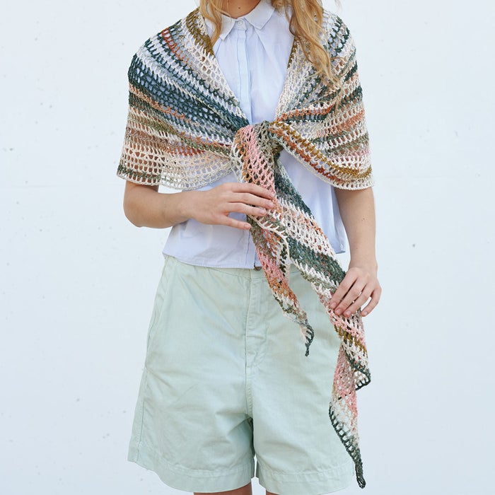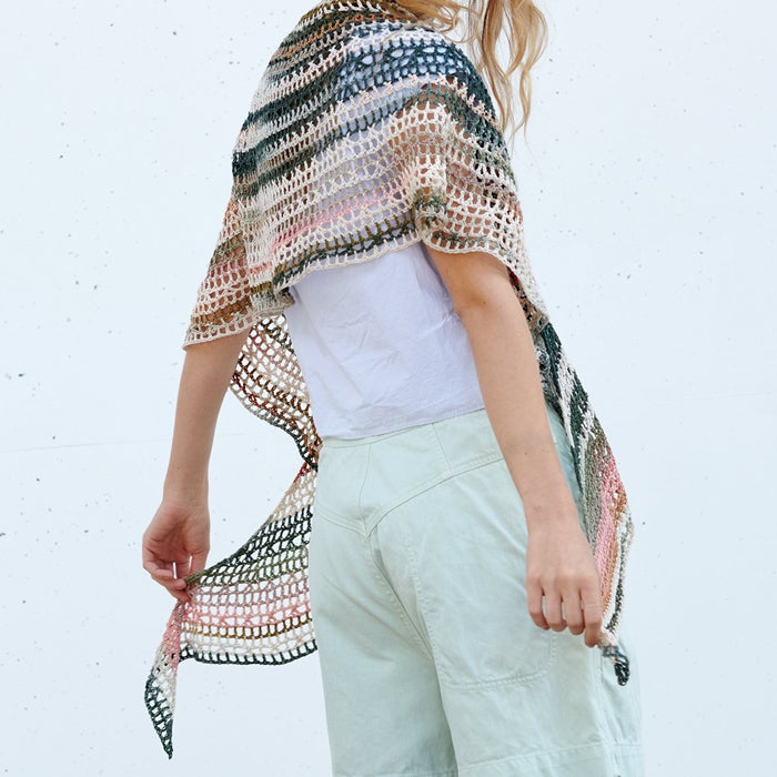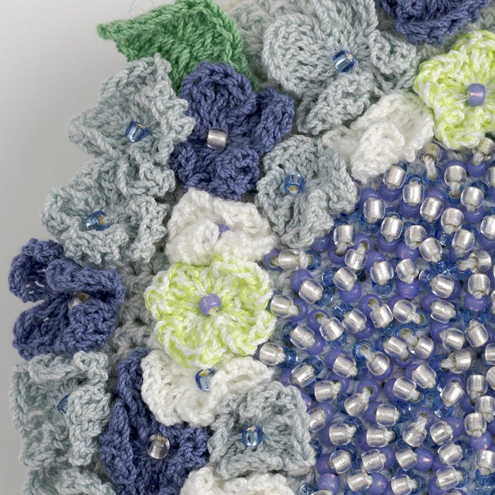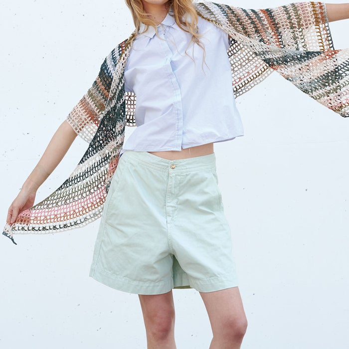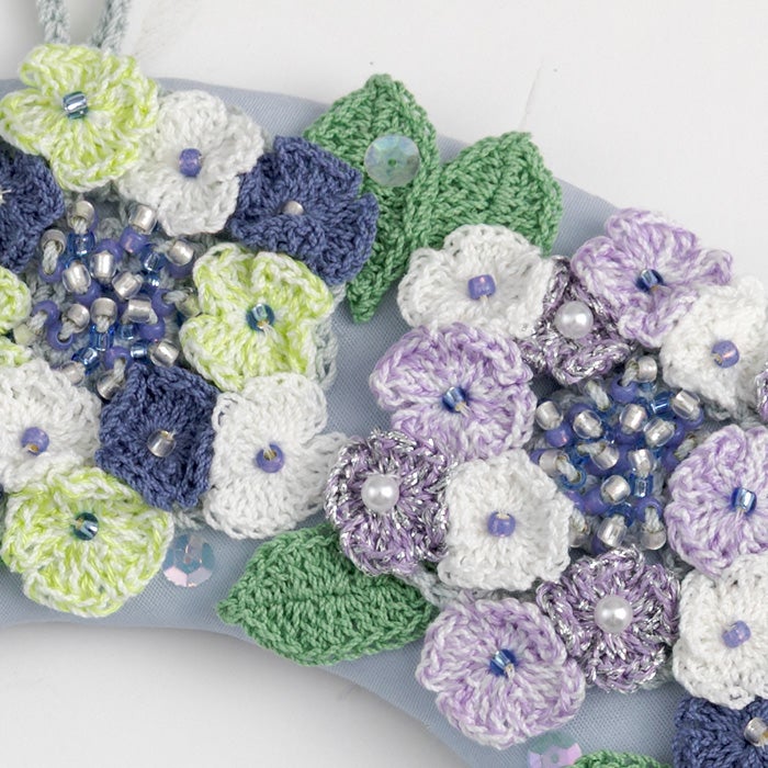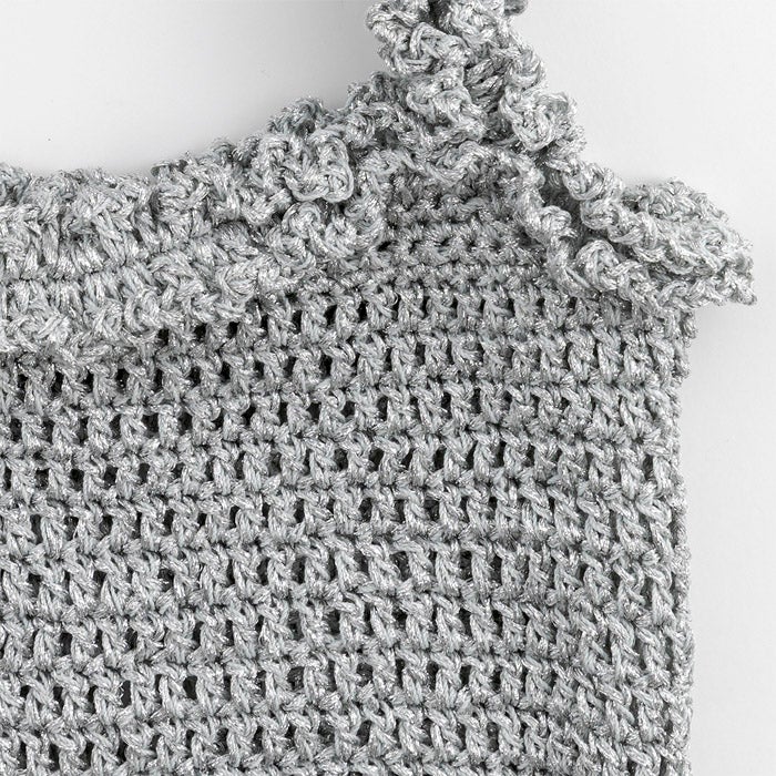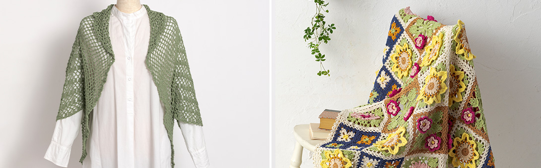 柔らかな肌触りと発色に優れた美しい光沢の〈プライムレース20〉のフリルレースベスト、オーガニックコットンを100%した〈オーガニックシェイ〉のサークルフラワーボレロが登場。 〈パピエドゥ〉のバッグはマットな色合いが上品な印象に仕上がります。